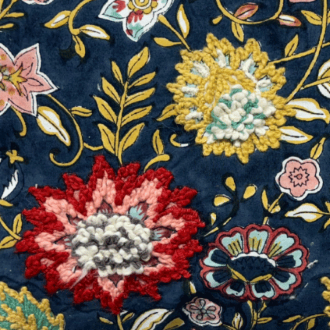 • Technique :Print with embroidered cushion